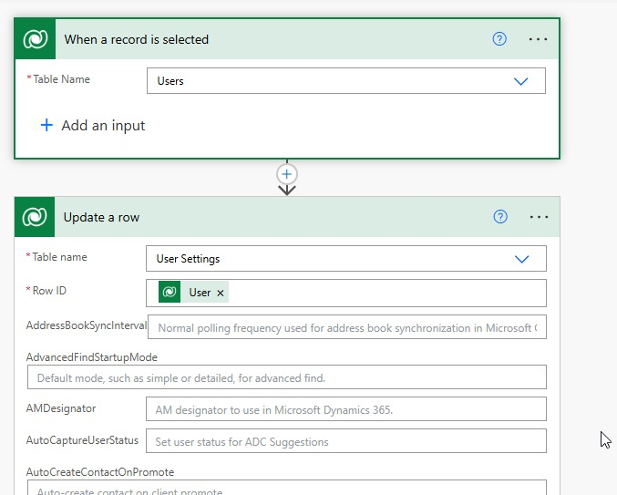 The key is to select the table as usersettingsconfig, via update a row – which will resolve to User Settings. You want to set timezone to e.g. 85 for London. Details here: https://learn.microsoft.com/en-us/power-apps/developer/data-platform/reference/entities/usersettings